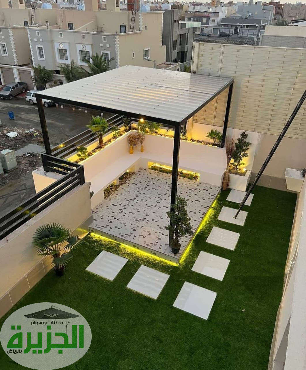 • المظلات المتحركة (الكهربائية): الخيار الأكثر ذكاءً، حيث يمكنك التحكم في فتحها وإغلاقها عبر الريموت كنترول، وهي مثالية للجلسات التي تحتاج لمرونة في الإضاءة والتهوية.