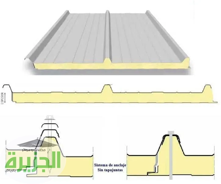 عبارة:عن ألواح مسبقة الصنع تتكون من طبقتين من الصاج المجلفن، يتوسطهما مادة عازلة (غالباً ما تكون مادة البولي يوريثان أو الصوف الصخري) بكثافات عالية. صُممت هذه الألواح لتعمل كجدران وأسقف متكاملة توفر حماية قصوى من الظروف المناخية القاسية.