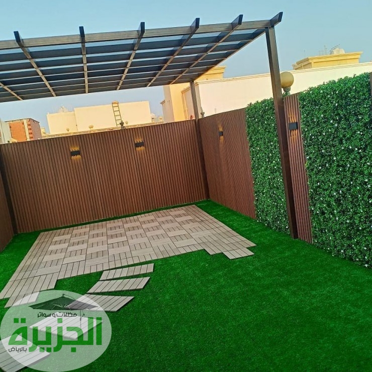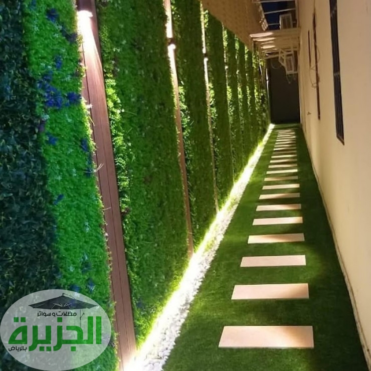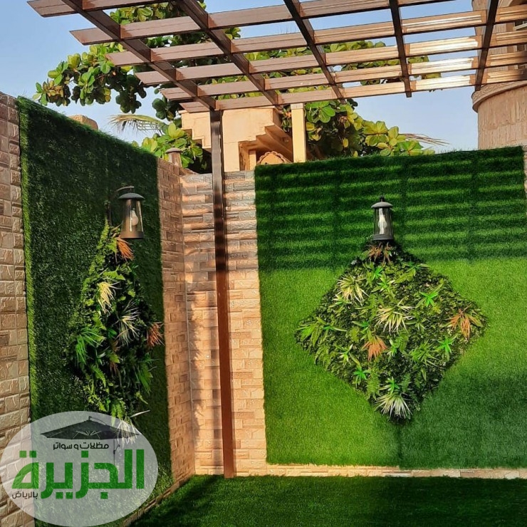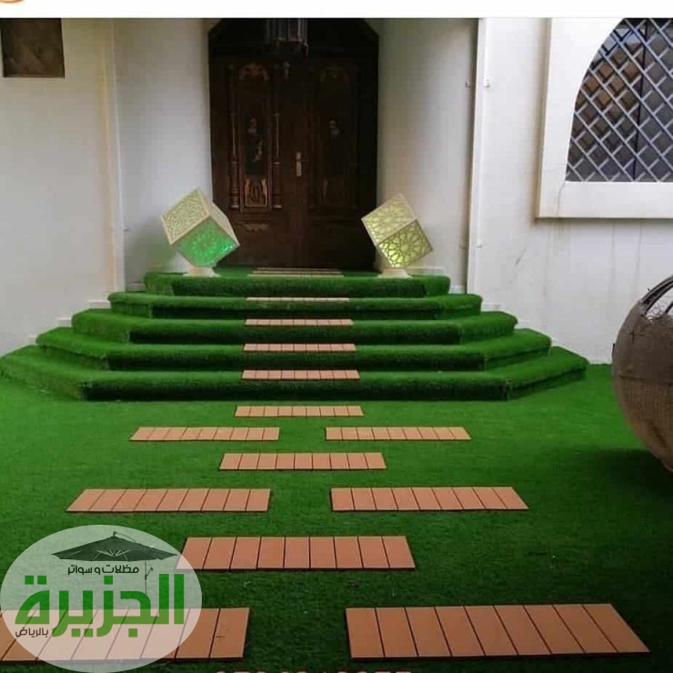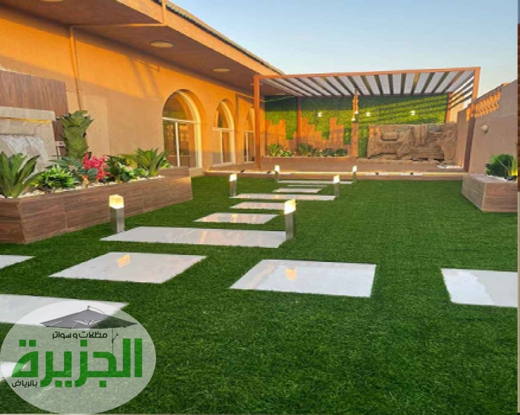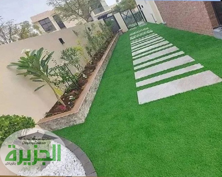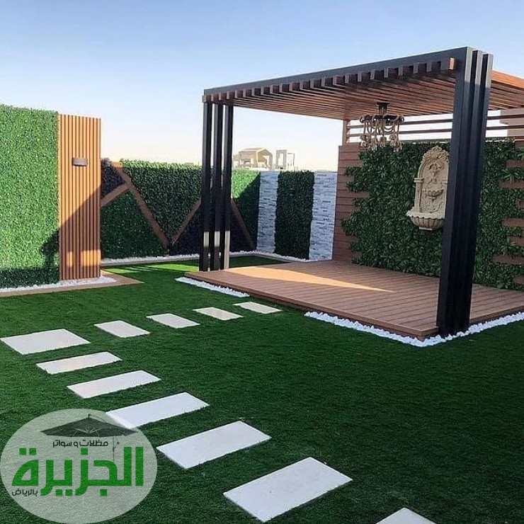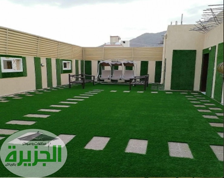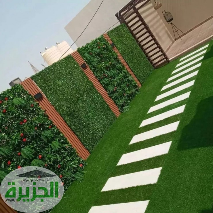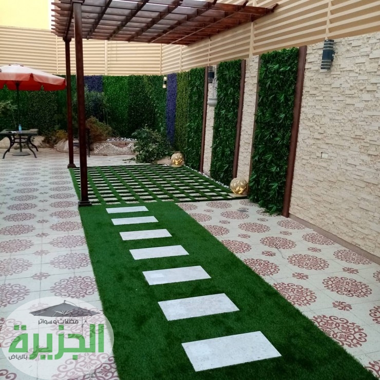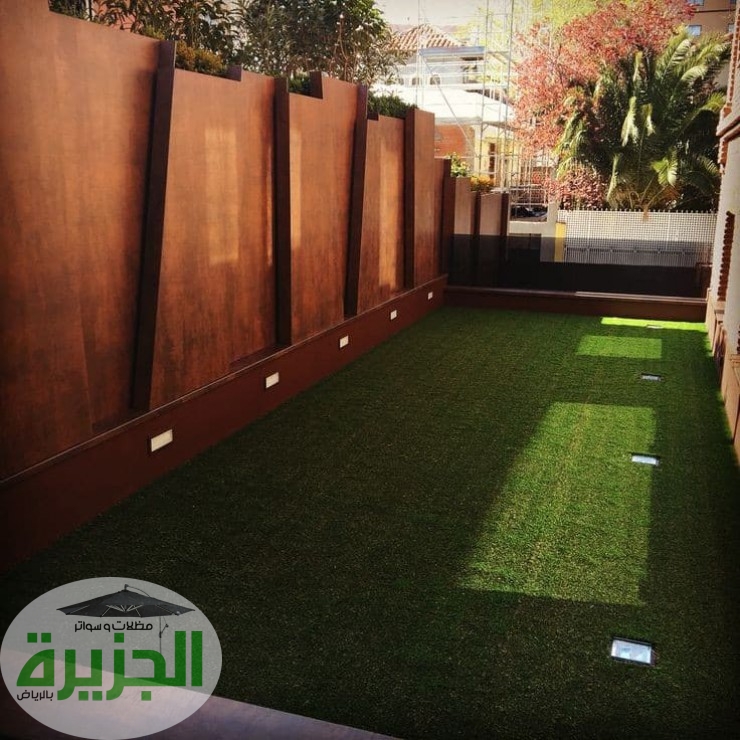 - العشب الصناعي: يمثل العشب الصناعي بديلًا عمليًا وجميلًا للعشب الطبيعي، خاصة في بيئة مثل الرياض التي تتميز بمناخها الجاف. فهو لا يتطلب صيانة مستمرة أو ريًا، مما يوفر لك الوقت والجهد والمال. بالإضافة إلى ذلك، يظل لونه أخضر وجميلًا على مدار السنة، مما يضفي حيوية دائمة على استراحتك.