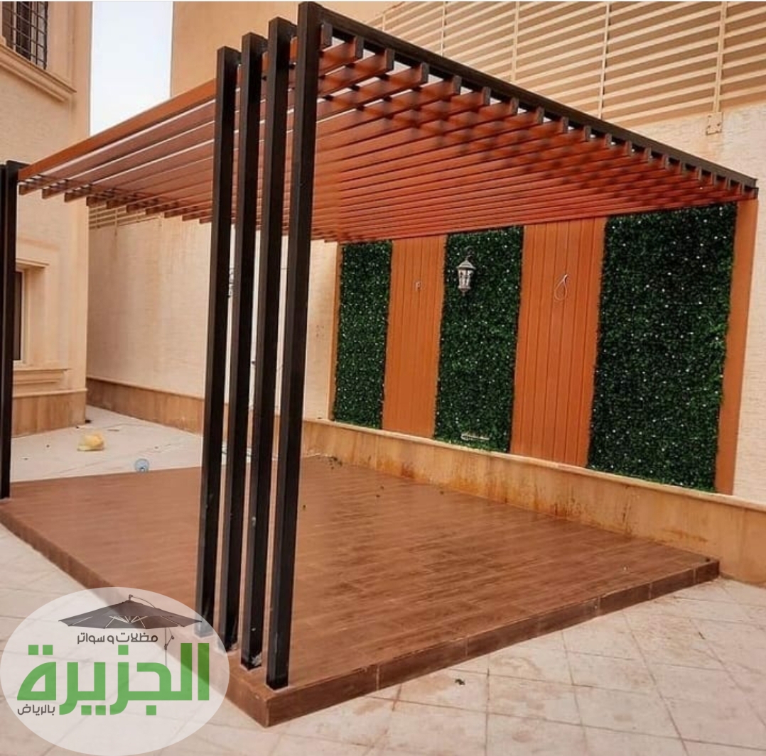 - مظلات وسواتر الخشب البلاستيكي (المُعالج): لمسة من الفخامة الطبيعية دون عيوب الخشب العادي. مقاومة للرطوبة والحشرات وتغير الألوان. مثالية للحدائق والجلسات الخارجية.
