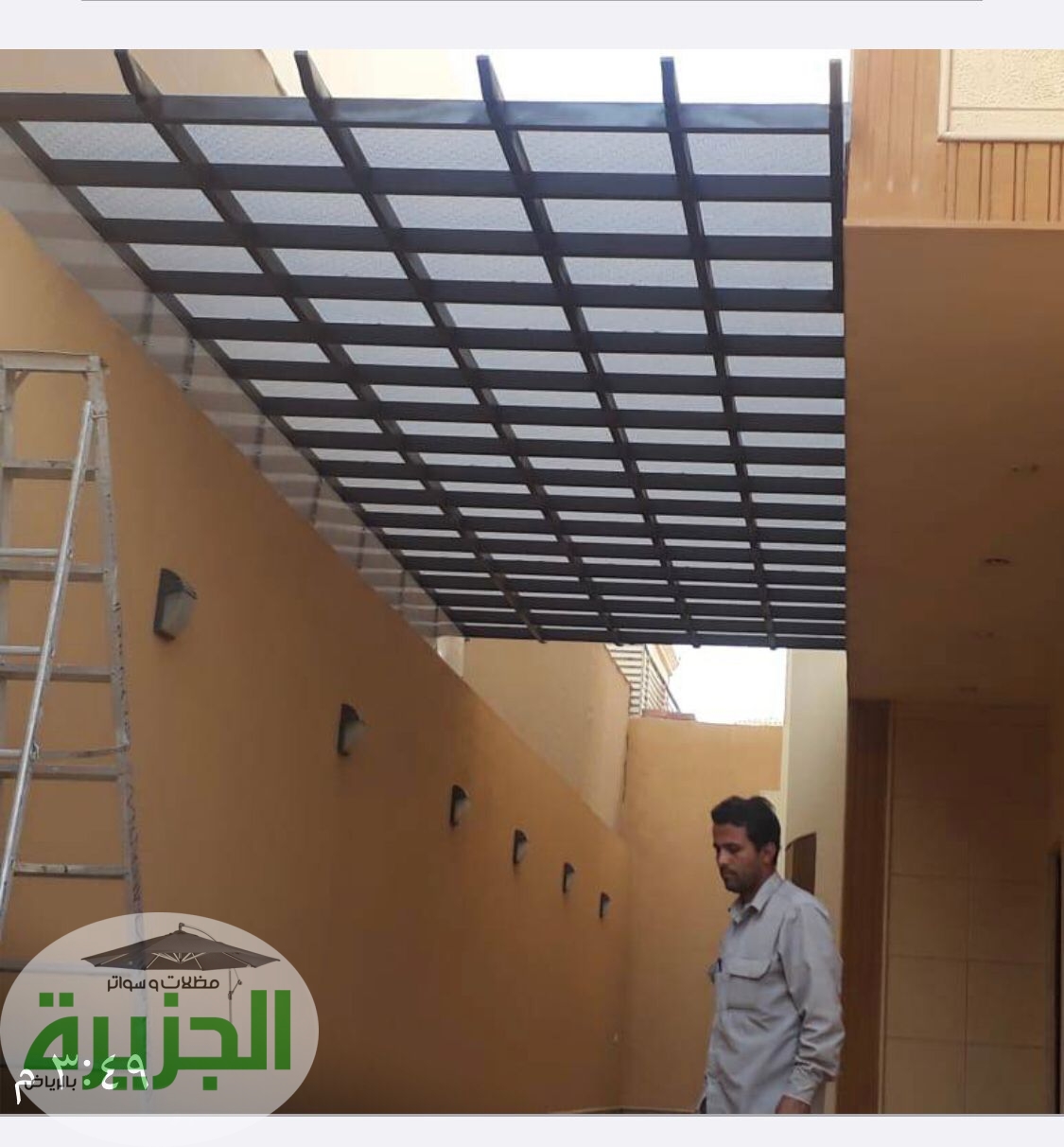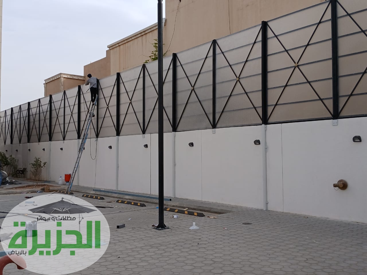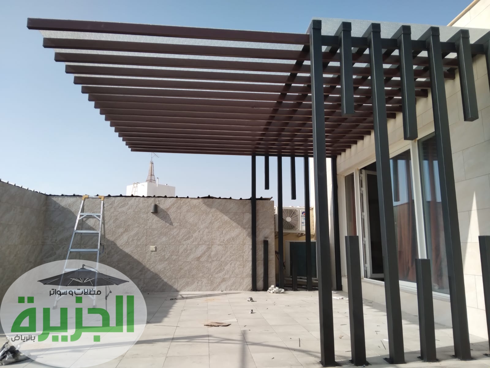 - مظلات وسواتر الحديد (شرائح ومجدول): توفر متانة لا تُضاهى، ويمكن دهانها بألوان تناسب الواجهات. السواتر الحديدية بنظام الشرائح توفر حجبًا كاملاً للرؤية، بينما المجدول يسمح بمرور خفيف للتهوية.