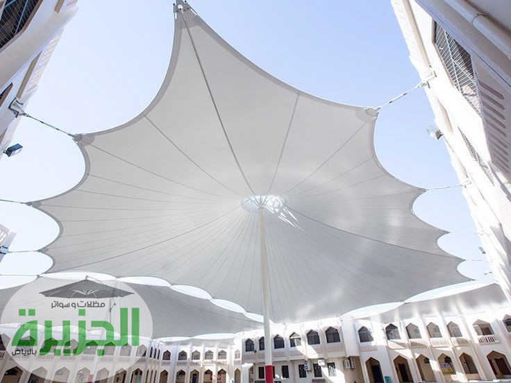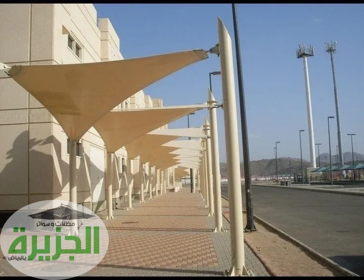 🕌 مظلات المساجد والمعالم: تستخدم لتغطية الساحات الخارجية بتصاميم مستوحاة من العمارة الإسلامية.