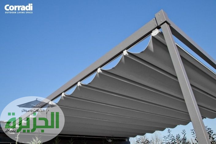تتوفر هذه المظلات بمواد متنوعة مثل القماش، الألمنيوم، وحتى مظلات الطاقة الشمسية التي قد تقدم تظليلاً مع توليد للطاقة.