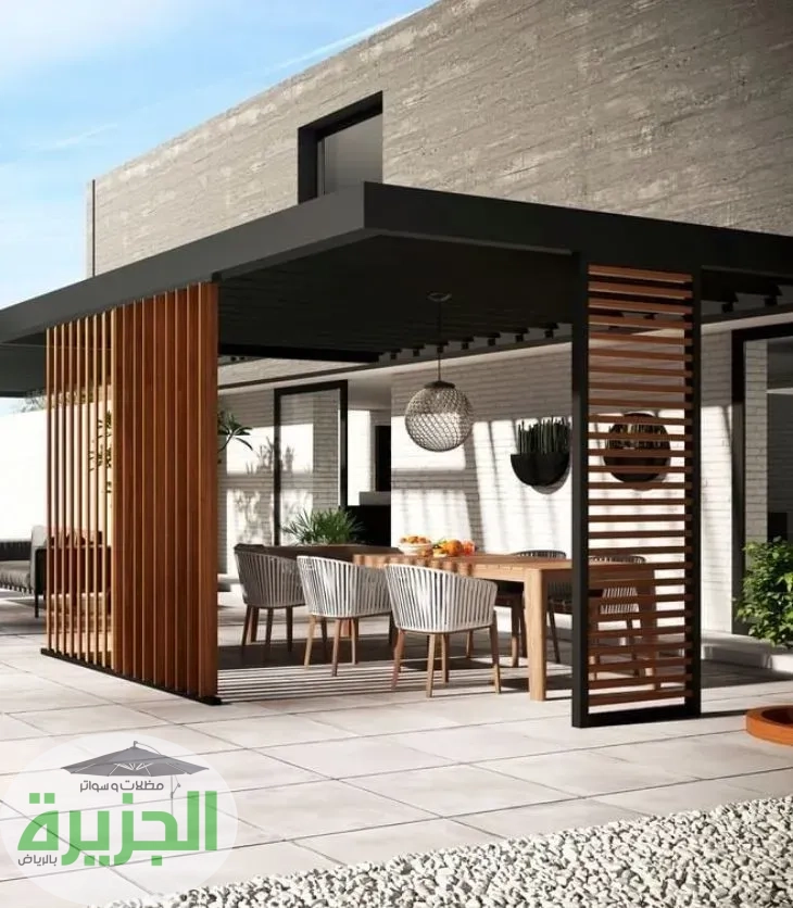 - تصميم التهوية: تأكد من أن تصميم البرجولة أو المظلة يسمح بمرور الهواء وتصريف المياه بسهولة لتجنب تجمع الرطوبة والحرارة.