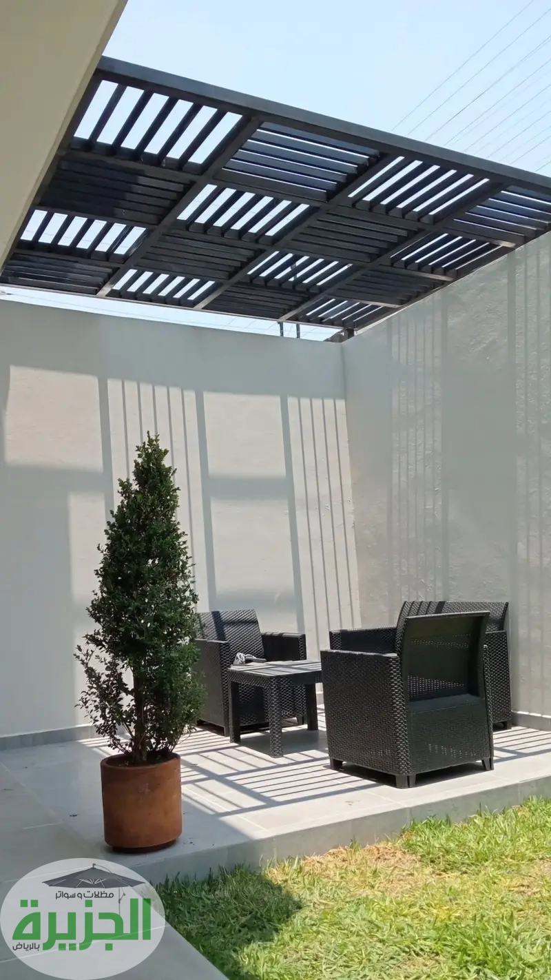 • ​القيمة الجمالية: تُضيف المظلات والبرجولات تصميماً معمارياً مميزاً، وتُعزز من المظهر العام للمنزل وتزيد من قيمته العقارية.