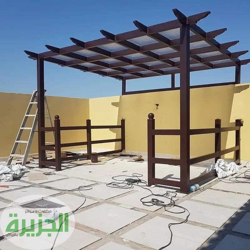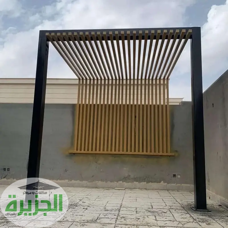 • ​البرجولات الحديدية (بتشطيب خشبي): يتم تصميمها من الحديد بسماكات عالية، ثم يتم دهانها بتشطيبات تُحاكي مظهر الخشب، لتوفر جمالية الخشب ومتانة الحديد معاً، وتعد حلاً اقتصادياً وفعالاً من حيث المتانة والصيانة.