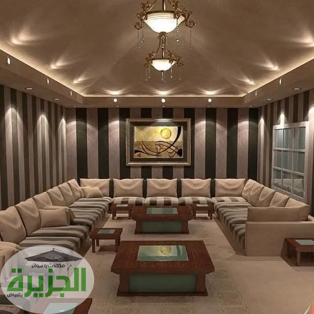 • ​الأثاث: اختر مقاعد (كنب) أرضية مدمجة أو زاوية . هذا النوع من الأثاث هو الأفضل لاستغلال الزوايا ويجعل المساحة تبدو أكبر وأكثر تنظيماً.